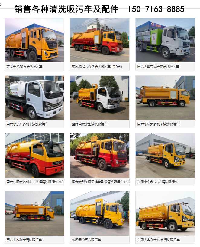清洗吸污車導購:東風多利卡清洗吸污車(10方),東風天錦清洗吸污車(15方),江淮清洗吸污車,東風天龍雙橋清洗吸污車,東風天龍前四后八清洗吸污車。
