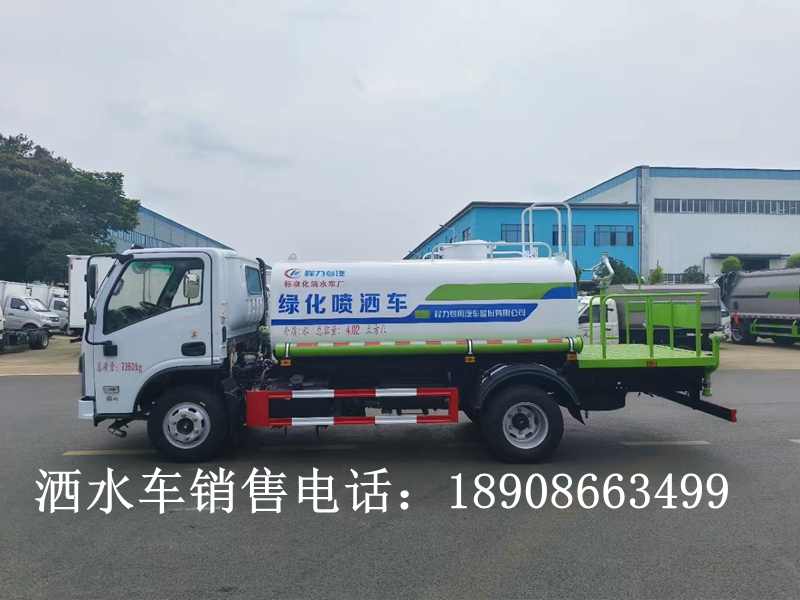 上裝配置:全新3.0版本涂裝,罐體實際容積5方,罐體材質采用Q235,隔板厚度3mm,罐體碳鋼厚度4mm,封頭厚度5mm.大口徑直通球閥,可選裝鋁合金三通,加粗主管道(76),標配:40/50自吸自排灑水泵。灑水功能:前沖、后灑、測噴、高位花灑、尾部綠化炮。